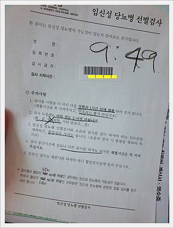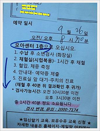 最重要的就是一個小時後9:49分要回來抽血, 在這之間不可以吃東西~連喝水都不可以
